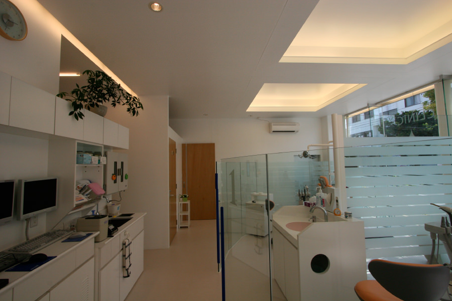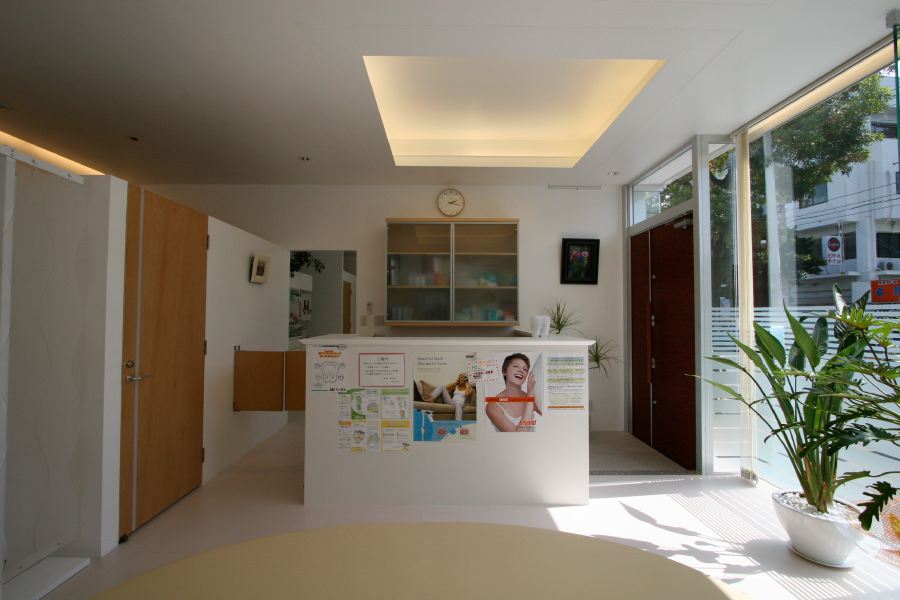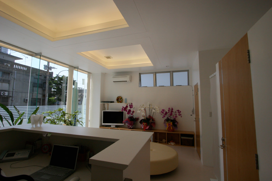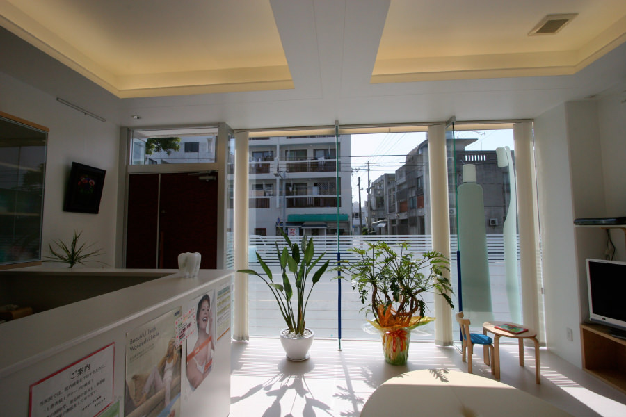古い建物の1階部分を改装し、新規の女医さんが経営する歯医者さんを名護市内に計画。大通りに面して、全面ガラスで覆ったモダンな外装。インテリアは、白を基調とし、女医さんらしい暖かさを演出。導線計画は、オリジナルソファを利用した新感覚の待ち時間の過ごし方を提案!