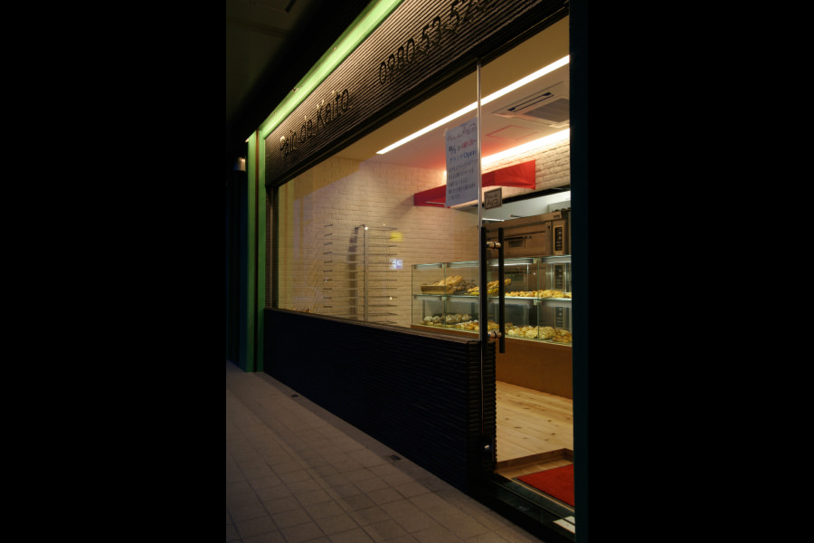 立地条件から決めた店舗は、緑色の建物。デザインする側としては、腕を試されたような条件でした。最初のインスピレーションを大事に内外装とも焼き窯をイメージ。そして、地元に根付いたトレンディなパン屋さんを意識してデザインを仕上げてみました。緑色の建物だからこそ、行き着いたデザインにもご注目下さい。
