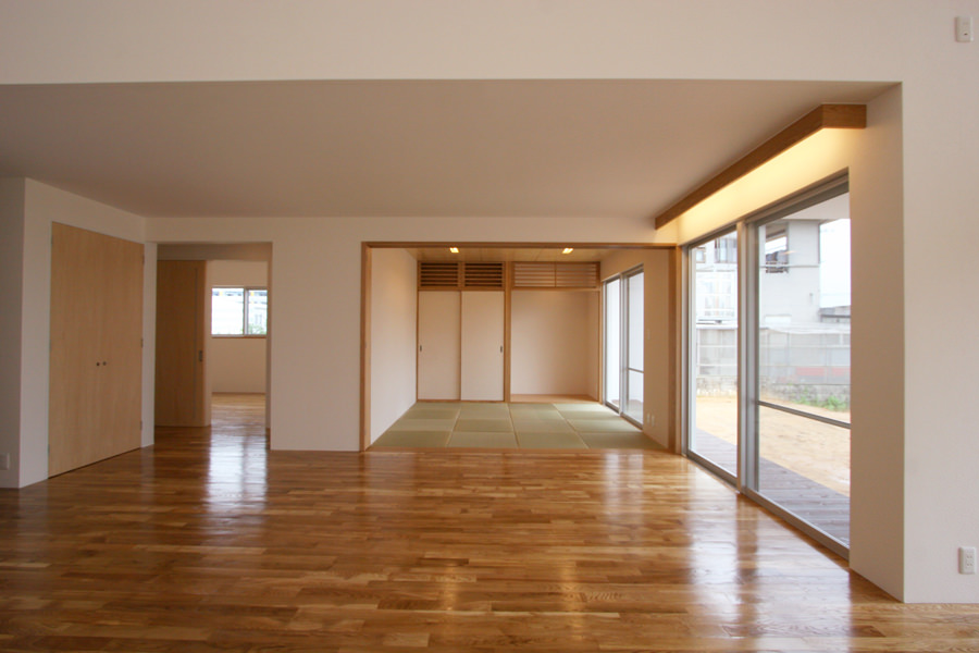 今回は、区画整理地区内に建つ住宅です。これから、隣地にどんどん住宅が建設されていくことが予想されます。そんな環境の中で、いかに隣地や道路からの視線を気にすることなく過ごすことを可能にするのかを考えてみました。